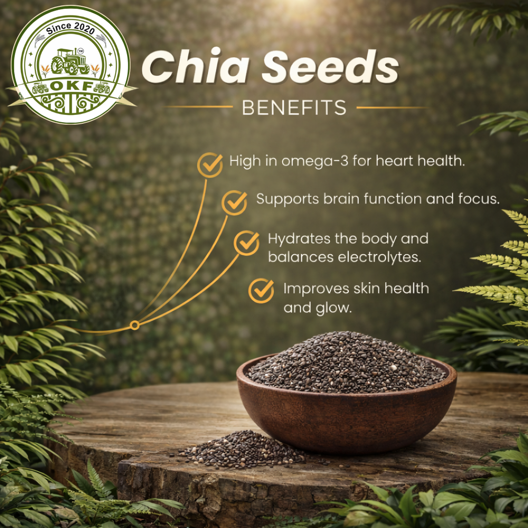 Small but mighty! Organic Kheti Farm’s Chia Seeds are a nutrient-dense superfood packed with omega-3 fatty acids, fiber, and antioxidants—perfect for daily energy, digestion, and overall wellness.