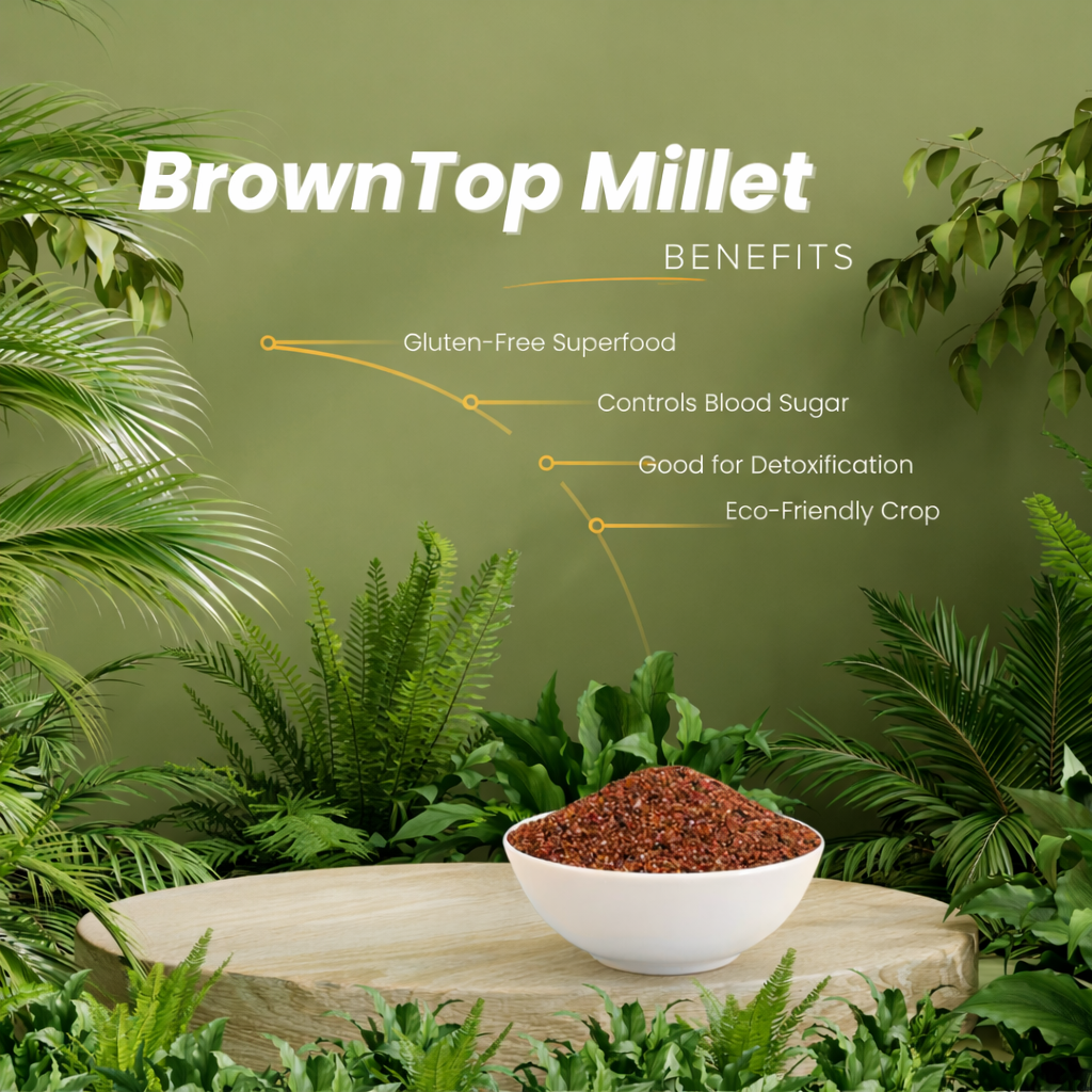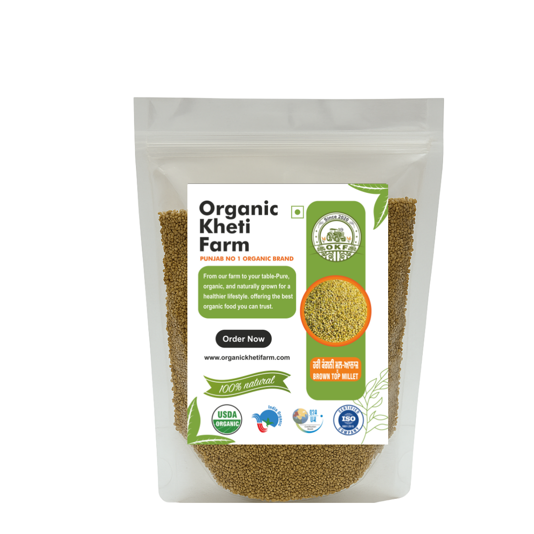 Once a hidden gem in Indian kitchens, our Brown Top Millet is back to bless your plate with wholesome nutrition and earthy goodness. Unpolished, untouched by chemicals, and lovingly grown on organic farms in Punjab – this millet is a powerhouse of fiber, iron, and slow-digesting carbs.