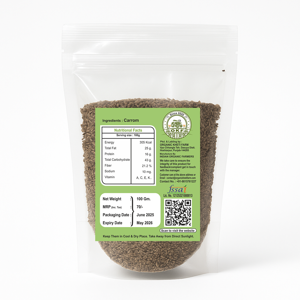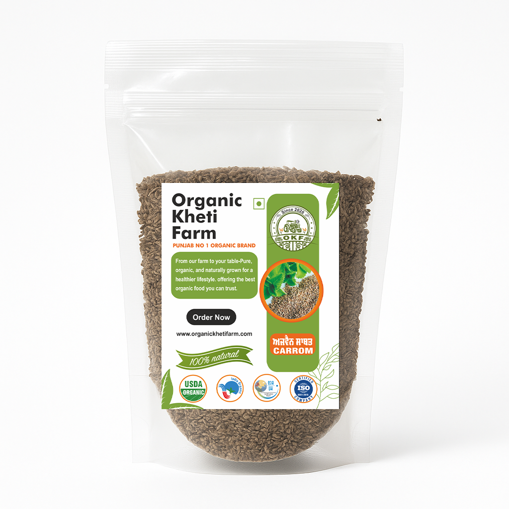 Spice up your health with Organic Kheti Farm’s Ajwain (Carom Seeds) Powder — a time-honored Ayurvedic remedy known for its bold flavor and powerful digestive benefits. These tiny seeds pack a punch of wellness, making them a must-have in every Indian kitchen.