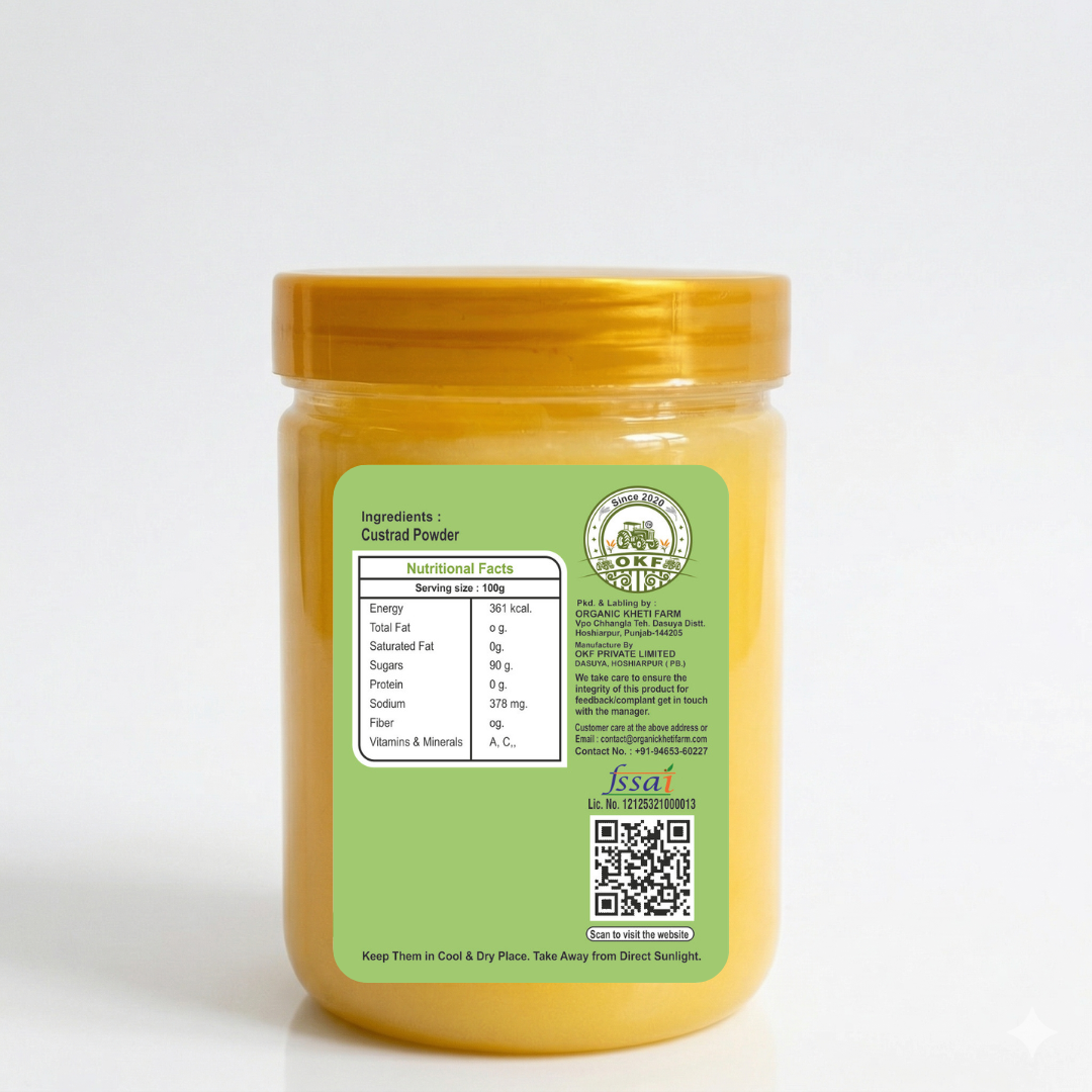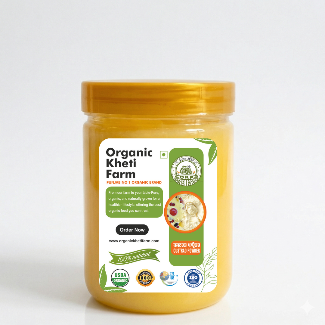 Add creamy sweetness and wholesome goodness with Organic Kheti Farm’s Custard Powder — a premium ingredient for making smooth, delicious custards and desserts. Carefully processed to retain purity, it’s perfect for creating delightful treats for the whole family.