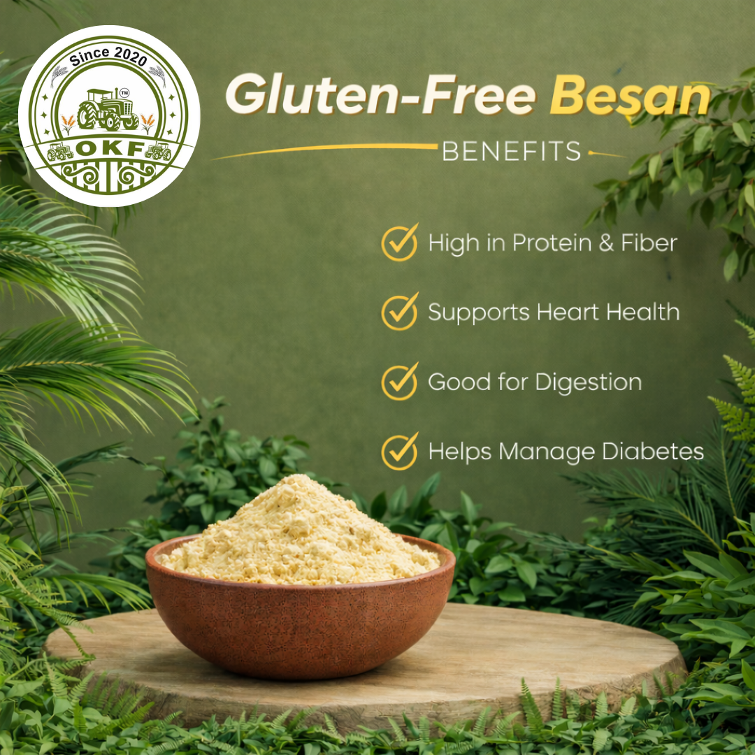 Straight from our organic farm, this besan (gram flour) is more than just an ingredient — it’s the golden essence of pakoras on a rainy day, the warmth of handmade chillas, and the soul of festive sweets. Gluten-free and stone-ground for purity, it’s packed with protein and tradition alike.