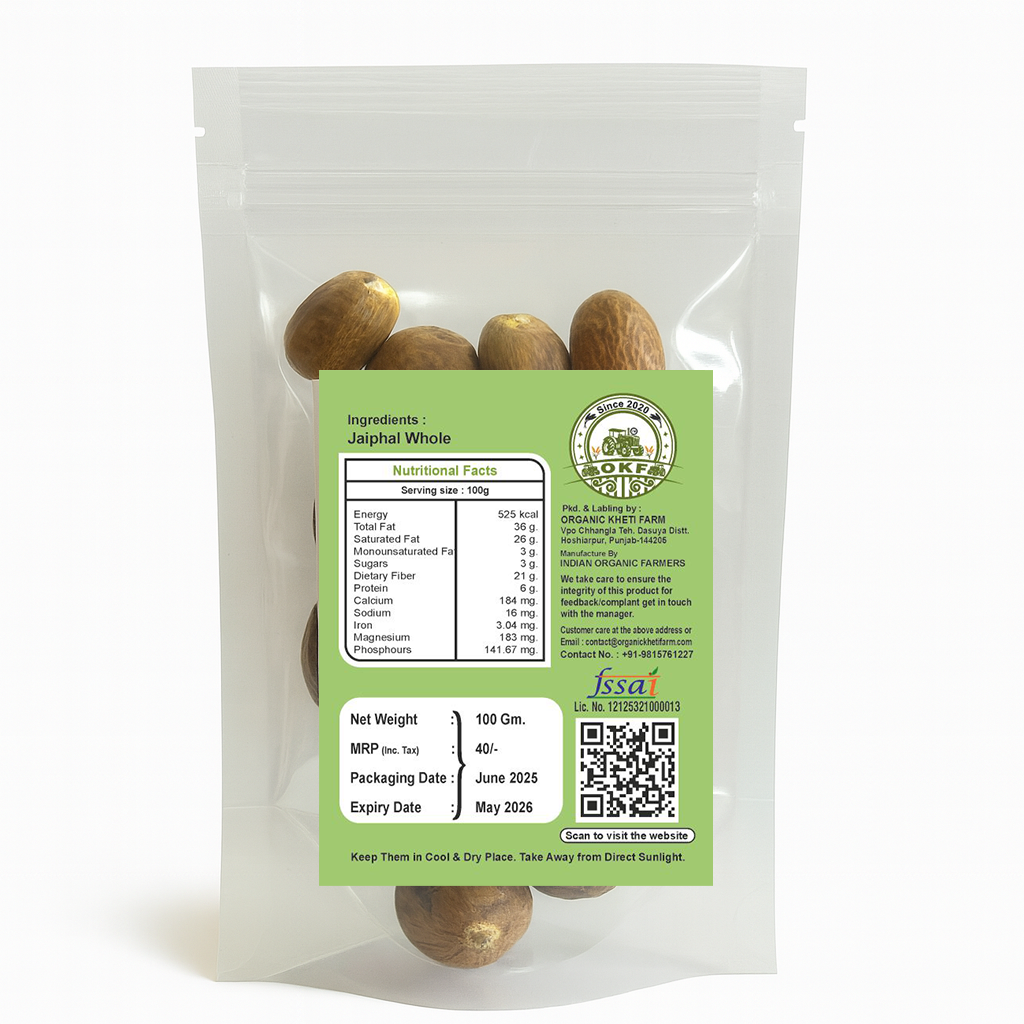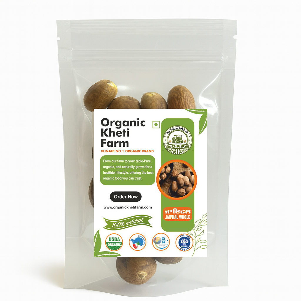 Add aroma and warmth to your dishes with Organic Kheti Farm’s Jaiphal (Nutmeg) — a premium spice cherished in Ayurveda for its digestive, antioxidant, and immunity-boosting properties. Handpicked and naturally dried to retain its rich flavor, Jaiphal elevates both taste and wellness.
