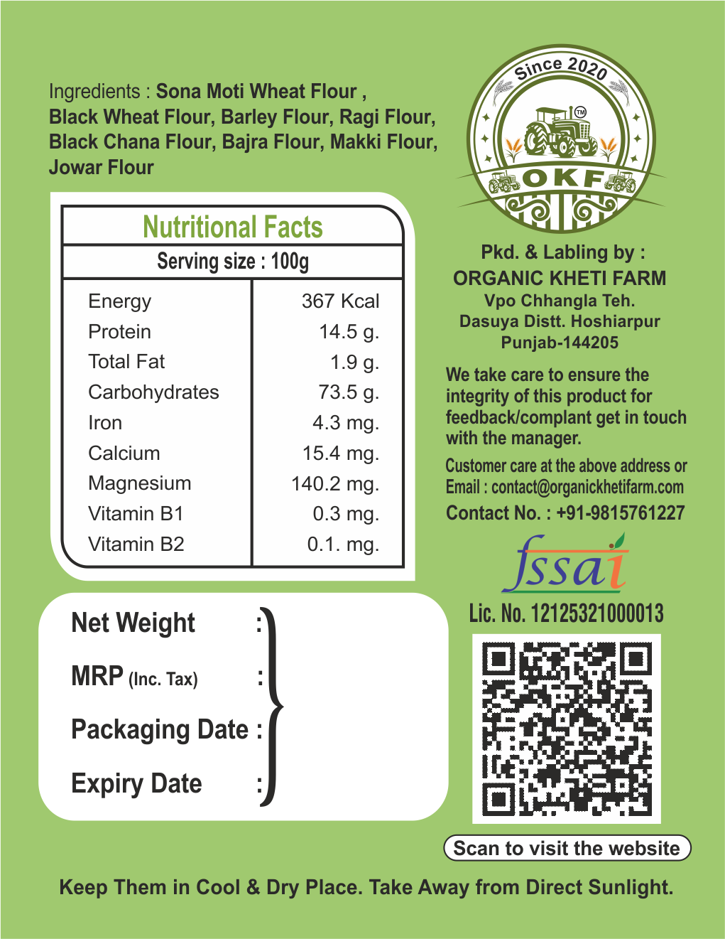 Fuel your day with Organic Kheti Farm’s Multigrain Atta — a wholesome blend of carefully selected grains, crafted to provide the perfect balance of taste, nutrition, and energy. Packed with fiber, proteins, and essential nutrients, this atta is your healthy choice for everyday meals.