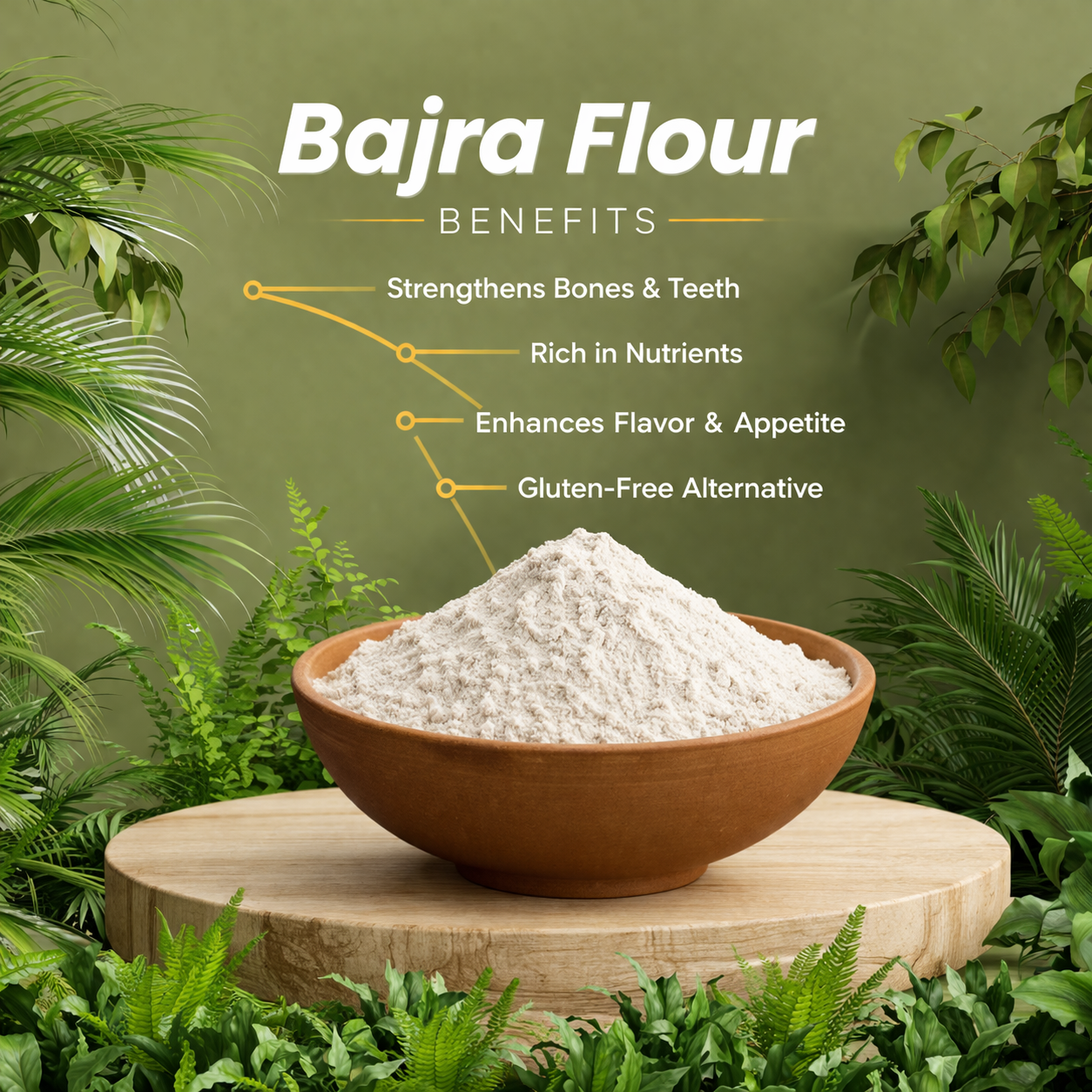 Discover the hearty flavor and nutritional power of Organic Kheti Farm’s Bajra Flour, made from organically grown pearl millet. Naturally rich in iron, fiber, and protein — ideal for winter meals, gluten-free rotis, and wholesome tandoori snacks.