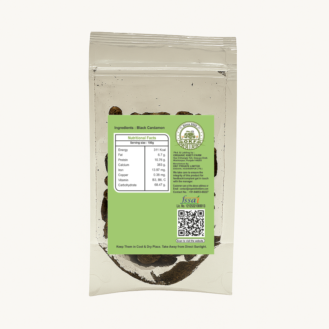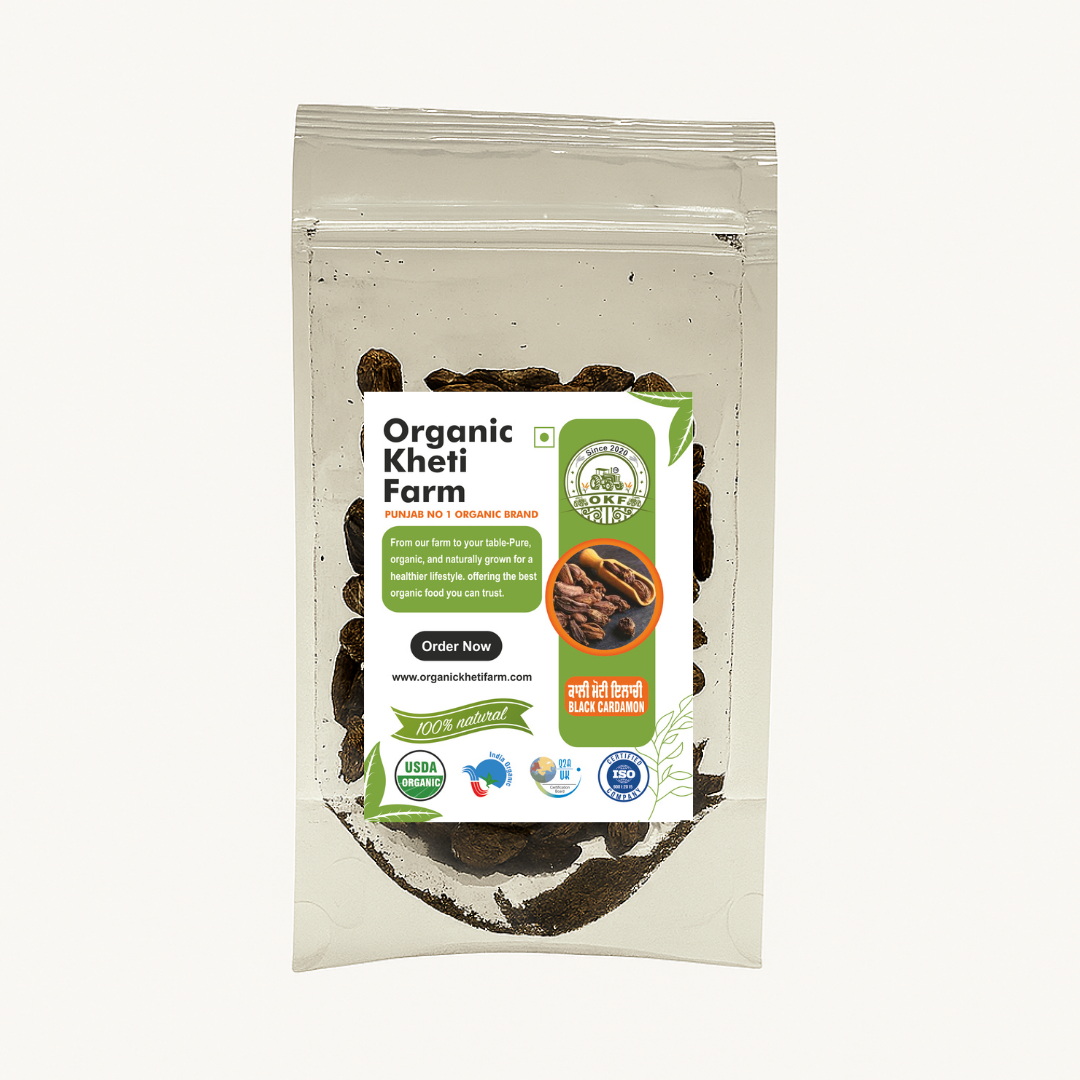 Add bold aroma and depth to your cooking with Organic Kheti Farm’s Black Cardamom (Badi Elaichi). Grown organically and sun-dried to preserve its signature smoky flavor, this spice is perfect for biryanis, dals, masala teas, and traditional Ayurvedic preparations.