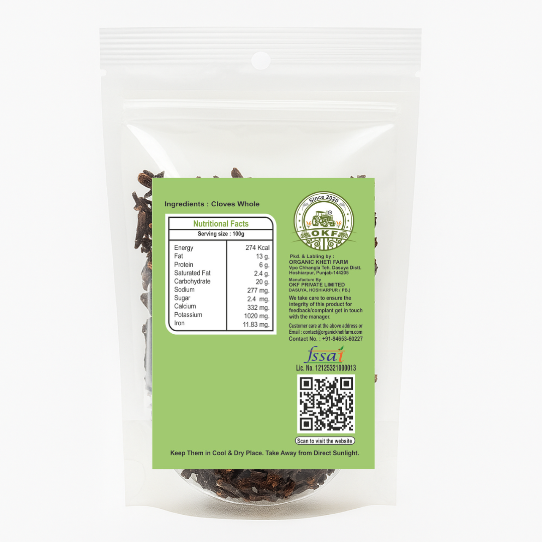dd a bold burst of flavor and natural healing to your kitchen with Organic Kheti Farm’s Whole Cloves (Laung). Known for their antibacterial and anti-inflammatory properties, these aromatic buds are perfect for tadkas, teas, mouth fresheners, and Ayurvedic remedies.