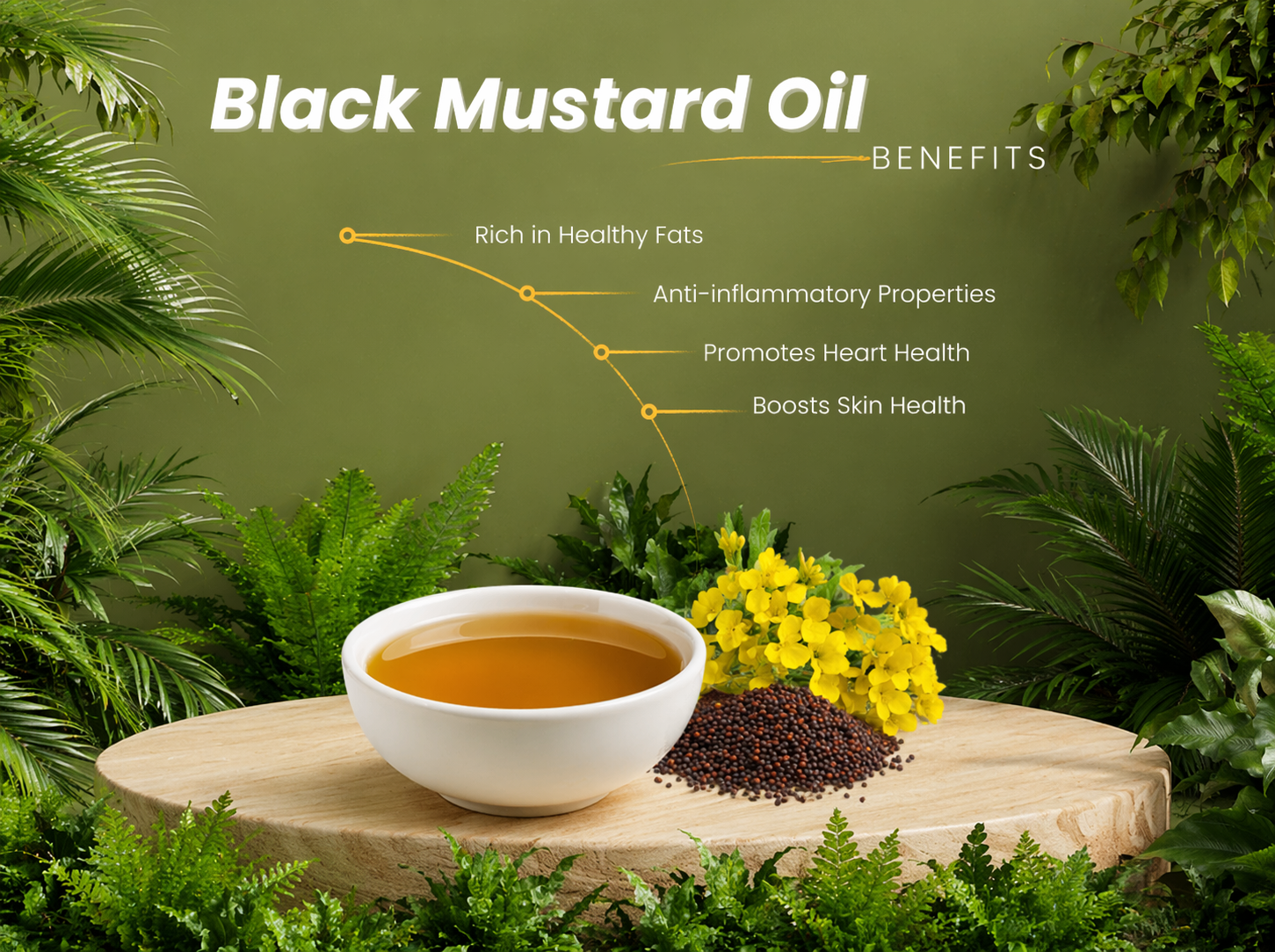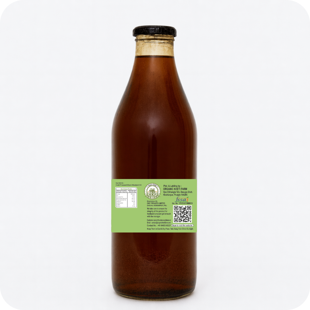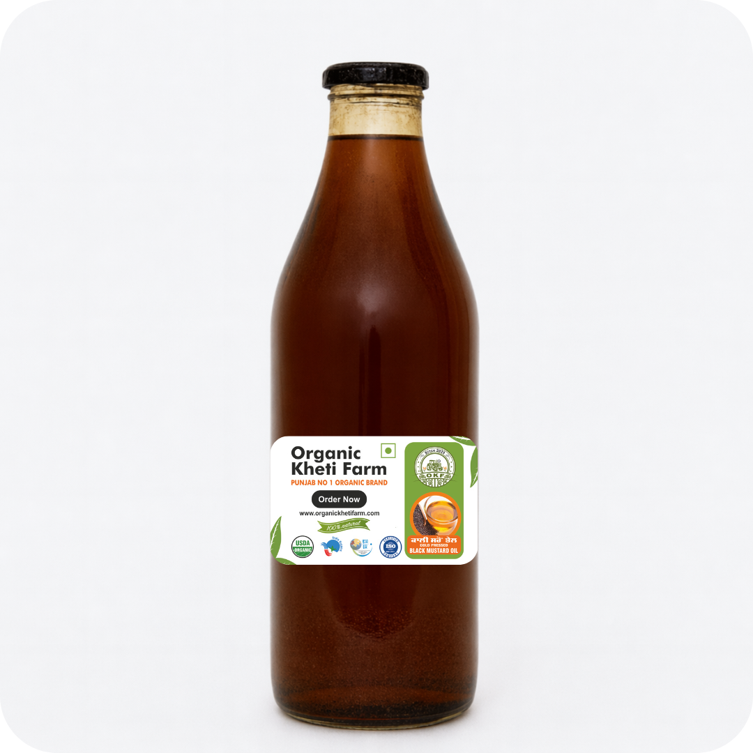 Elevate your cooking with Organic Kheti Farm’s Cold-Pressed Black Mustard Oil — a traditional oil cherished in Ayurveda for its robust flavor, natural warmth, and health-promoting properties. Extracted gently from premium black mustard seeds, this oil retains all its natural nutrients and aroma.