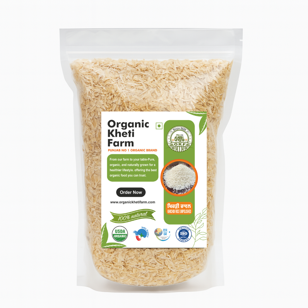 Rediscover the traditional goodness of Organic Kheti Farm’s Unpolished Rice — minimally processed to preserve its fiber, nutrients, and earthy aroma. A healthier choice for everyday meals.