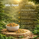 Enjoy the perfect balance of taste and nutrition with Organic Kheti Farm’s Mix Dal — a wholesome combination of moong, masoor, chana, urad, toor, and more. Rich in plant-based protein and dietary fiber, this dal mix is ideal for daily meals, khichdi, or soups.