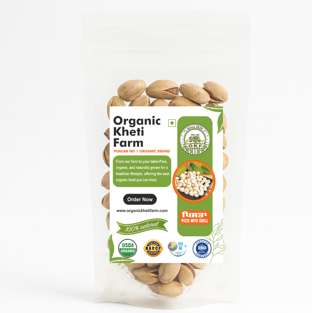 Crunch into health with Organic Kheti Farm’s Pista with Shell — sun-dried, unsalted, and rich in nutrients. A premium dry fruit snack that’s both delicious and wholesome.