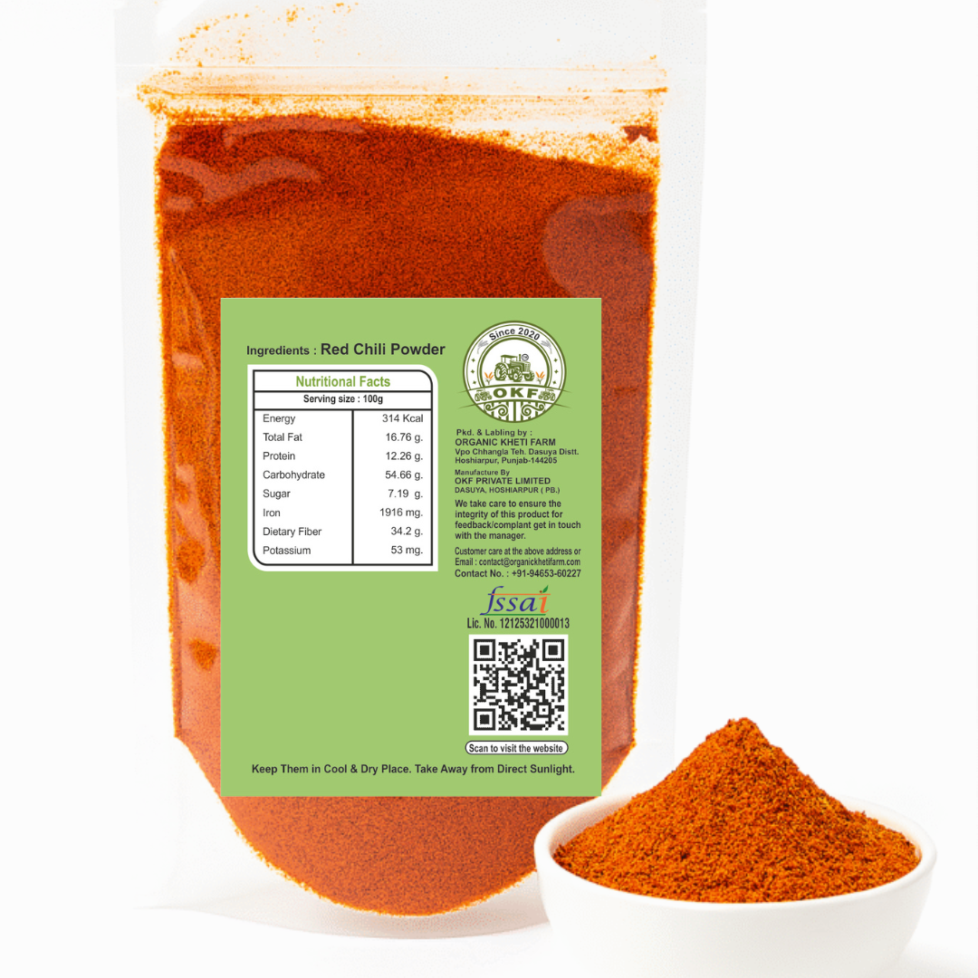 Ignite your recipes with the vibrant color and fiery kick of Organic Kheti Farm’s Red Chilli Powder. Milled from handpicked sun-dried red chillies, this spice delivers authentic heat and aroma, straight from the heart of Punjab’s organic fields. A pantry essential for adding rich color and intensity to Indian curries, tandoori dishes, snacks, and sauces.