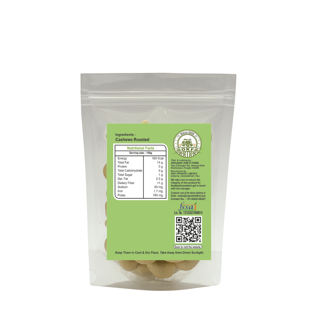 Satisfy your cravings with the perfectly roasted, golden cashews from Organic Kheti Farm. These premium quality nuts are slow-roasted without any additives or oils, delivering a guilt-free crunch that’s both delicious and nourishing. Ideal as a snack or a crunchy twist to your salads, desserts, and trail mixes.