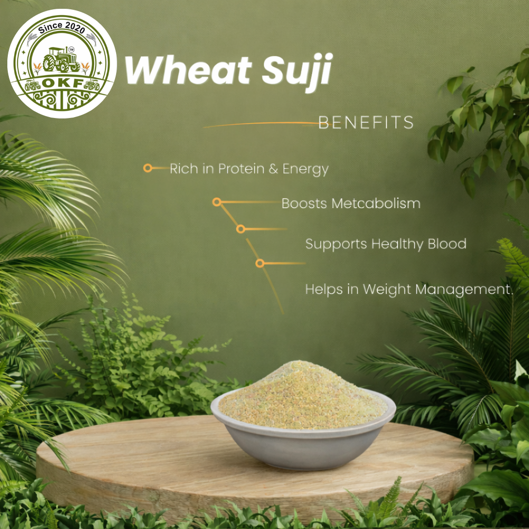 Bring purity to your plate with Organic Kheti Farm’s Wheat Suji, made from organically grown wheat, stone-ground to preserve its natural texture and flavor. Ideal for making upma, halwa, suji toast, pancakes, idlis, and more — it’s a pantry essential for health-conscious kitchens.