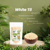 Add a nutritious crunch to your meals with our Organic White Sesame Seeds. Sourced from the best organic farms, these tiny seeds are rich in flavor and loaded with essential nutrients. Use them in chutneys, laddoos, salads, stir-fries, or even your morning toast. A timeless ingredient with powerful Ayurvedic benefits!