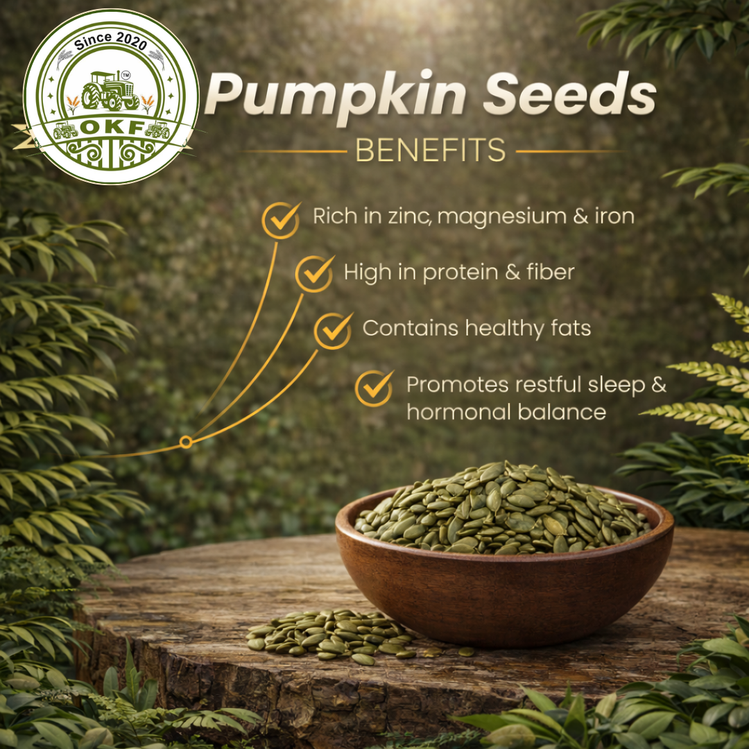 Fuel your body with the wholesome crunch of Organic Kheti Farm’s Pumpkin Seeds — a powerhouse superfood loved for its nutty taste and nutrient richness. Packed with protein, healthy fats, and essential minerals, these seeds are perfect for everyday energy and wellness.