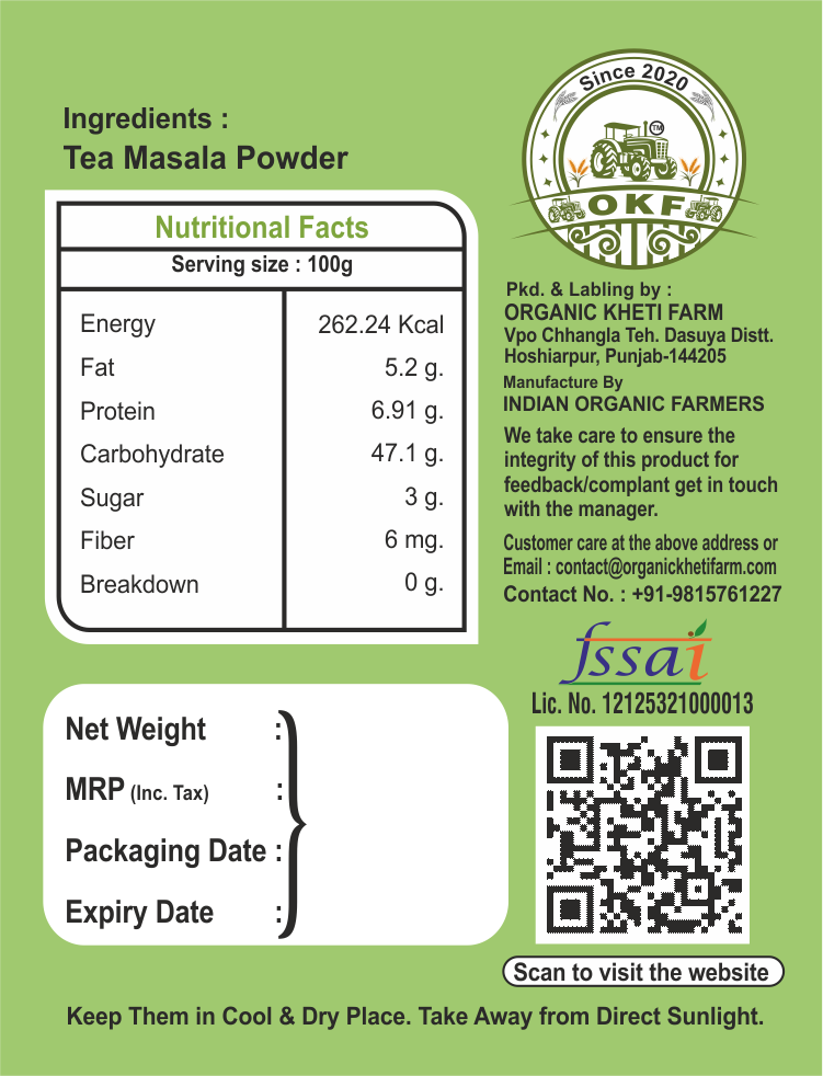 Awaken your senses with Organic Kheti Farm’s Tea Masala — a fragrant blend of premium spices that transforms every cup of chai into a soothing, soul-warming experience. Rooted in Ayurvedic tradition, this spice mix not only adds rich aroma but also uplifts your health with every sip.